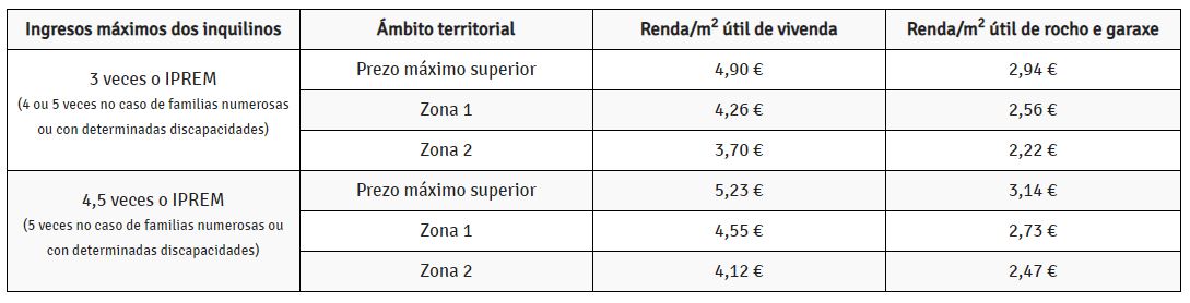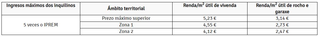 En el siguiente cuadro se resumen las cuantías de las rentas en función de los ingresos de los inquilinos y el ámbito territorial en el que estén las viviendas.