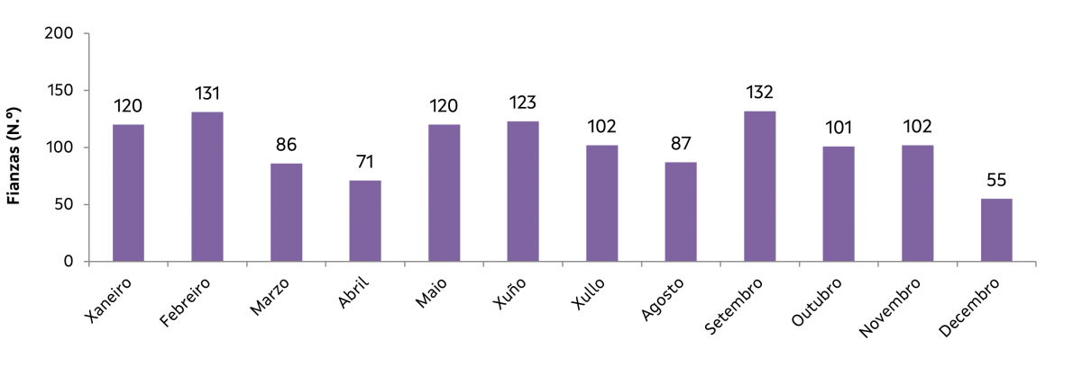 Nota: Como os valores de mes de contrato e mes de depósito non sempre coinciden (por exemplo, nas fianzas depositadas no mes de decembro poden aparecer contratos de novembro, outubro etc.), os resultados relativos aos contratos formalizados por mes e ano son sempre susceptibles de actualización.