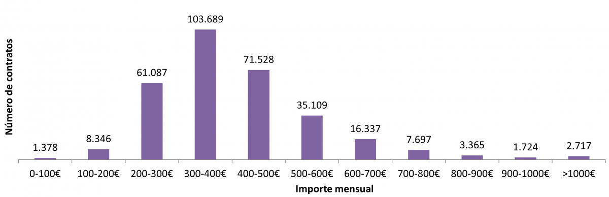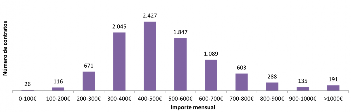 Nº de contratos en función del importe mensual