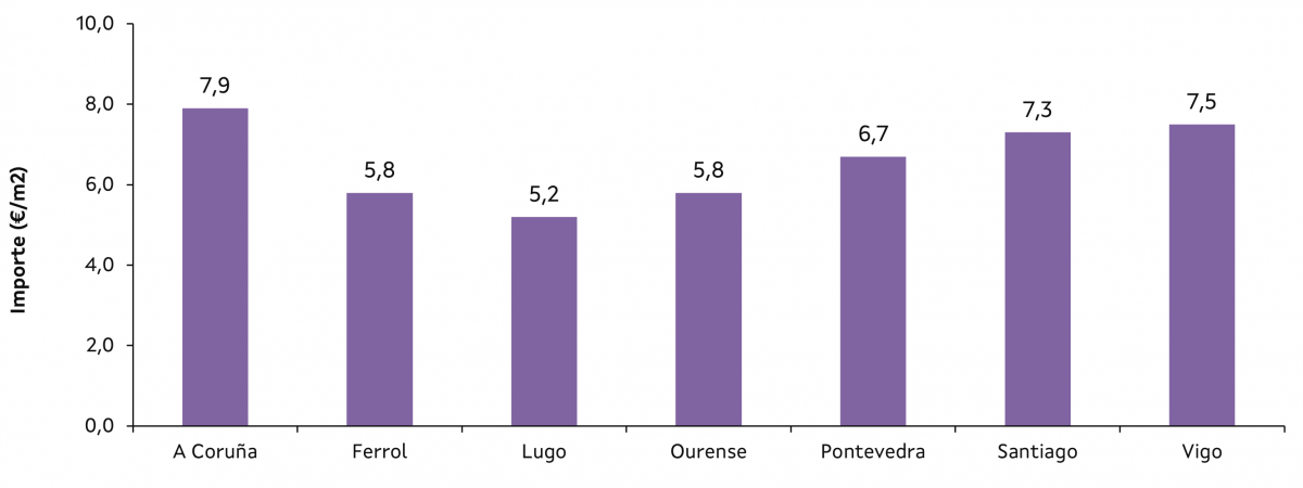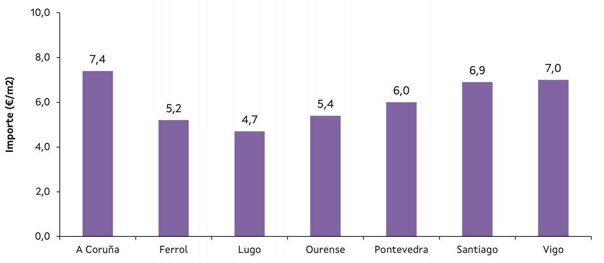 Precio por metro cuadrado de los alquileres en el año 2024 en los siete grandes municipios