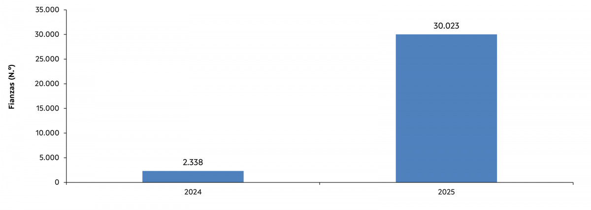 Número de fianzas depositadas en el año 2025 por año de contrato