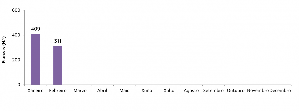 Nota: Como os valores de mes de contrato e mes de depósito non sempre coinciden (por exemplo, nas fianzas depositadas no mes de febreiro poden aparecer contratos de xaneiro, decembro, etc.), os resultados relativos aos contratos formalizados por mes e ano son sempre susceptibles de actualización.