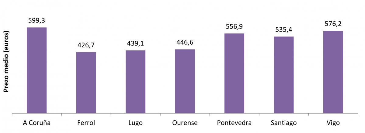 Prezo medio da renda mensual dos contratos asinados en 2022