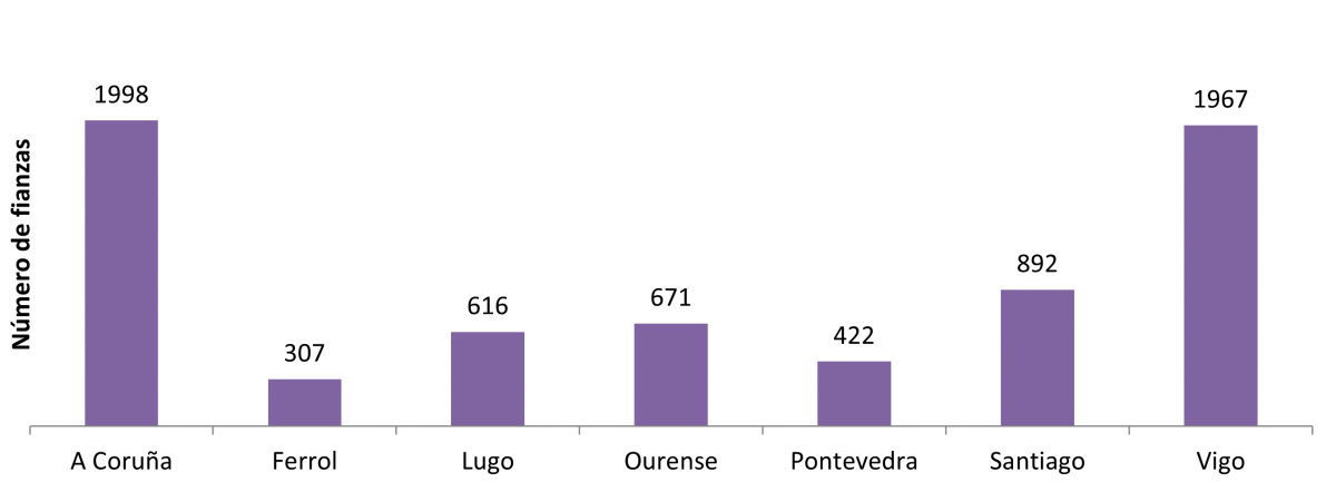Cidades Nº de fianzas Importe medio (€) Nº de fianzas Importe medio (€) Nº de fianzas Importe medio (€) Nº de fianzas Importe medio (€) Nº de fianzas Importe medio (€) Nº de fianzas Importe medio (€) Nº de fianzas Importe medio (€)