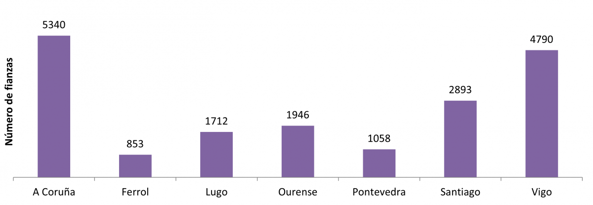 Cidades Nº de fianzas Importe medio (€) Nº de fianzas Importe medio (€) Nº de fianzas Importe medio (€) Nº de fianzas Importe medio (€) Nº de fianzas Importe medio (€) Nº de fianzas Importe medio (€) Nº de fianzas Importe medio (€)