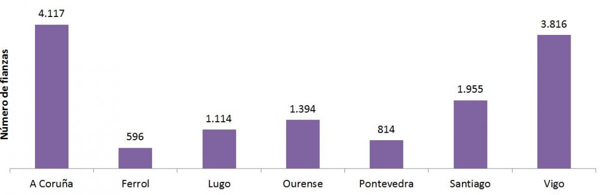 Cidades Nº de fianzas Importe medio (€) Nº de fianzas Importe medio (€) Nº de fianzas Importe medio (€) Nº de fianzas Importe medio (€) Nº de fianzas Importe medio (€)