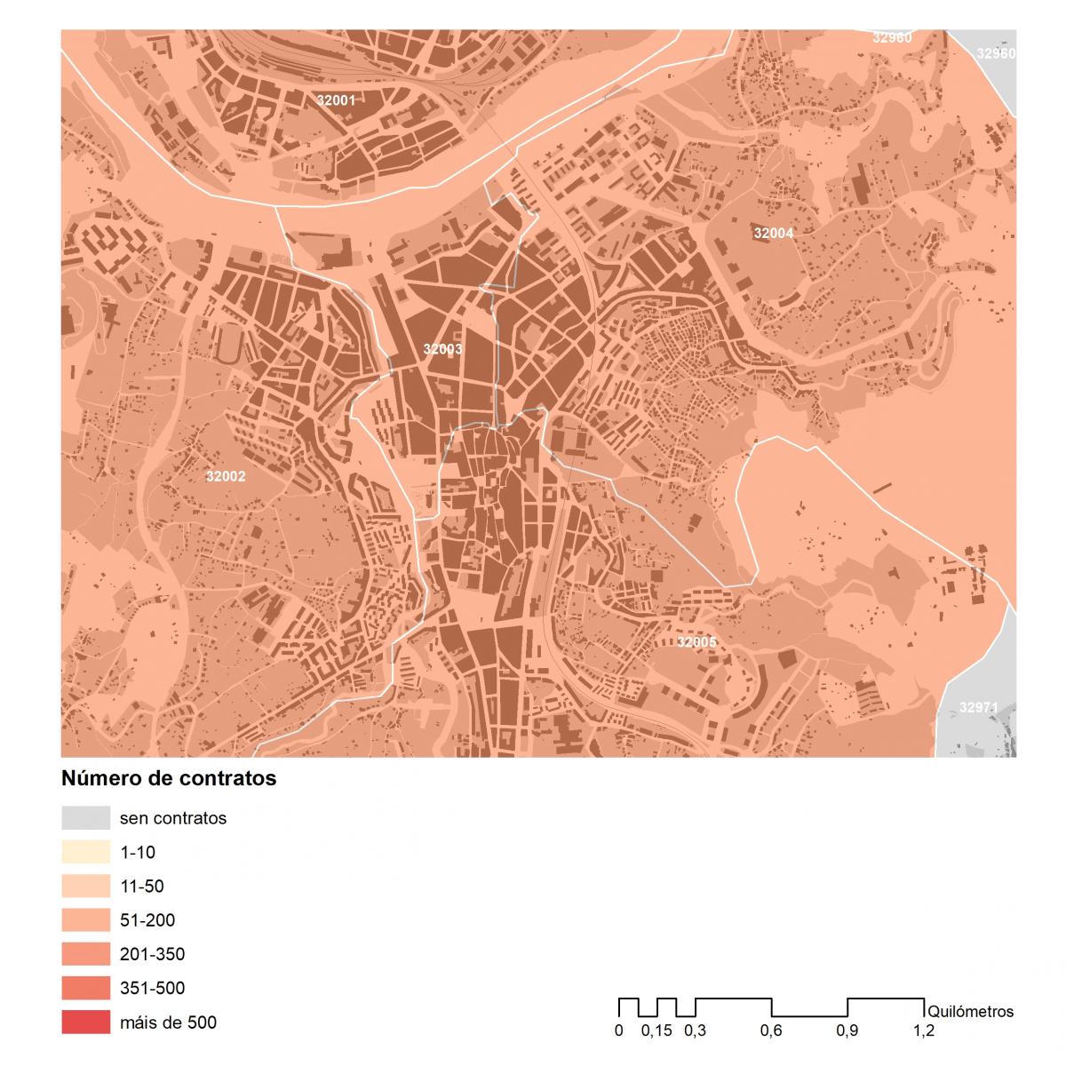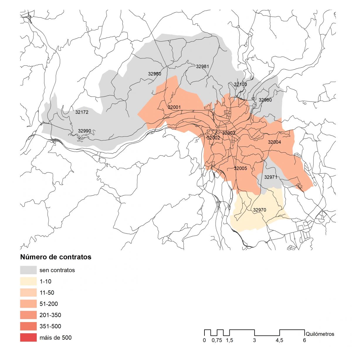 Número dos contratos asinados en 2019 no concello de Ourense por códigos postais