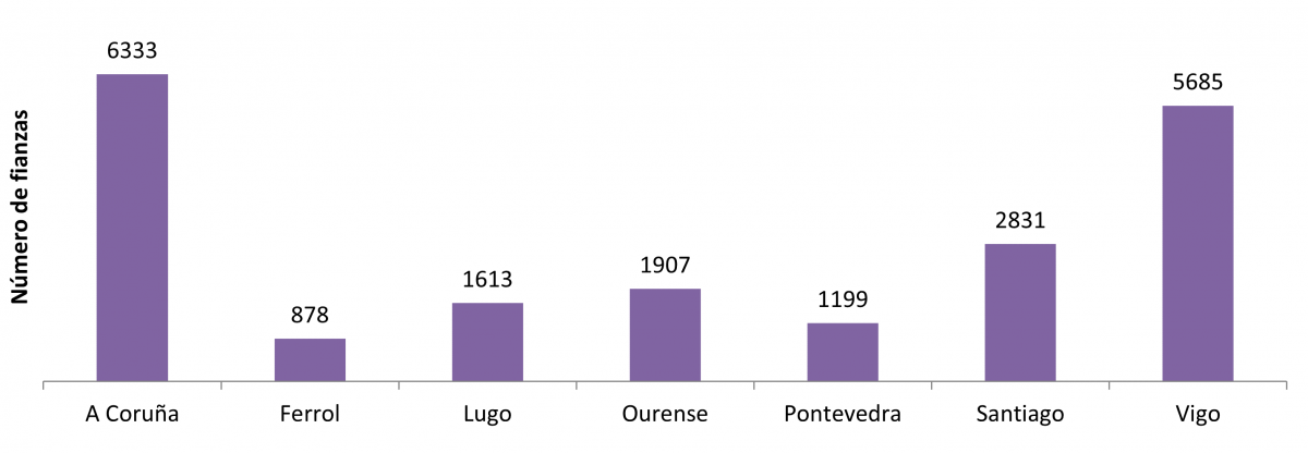 Cidades Nº de fianzas Importe medio (€) Nº de fianzas Importe medio (€) Nº de fianzas Importe medio (€) Nº de fianzas Importe medio (€) Nº de fianzas Importe medio (€) Nº de fianzas Importe medio (€) Nº de fianzas Importe medio (€)
