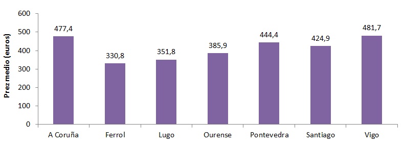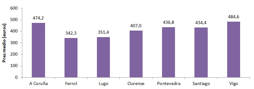 Prezo medio da renda mensual dos contratos asinados en 2018