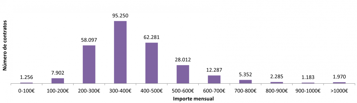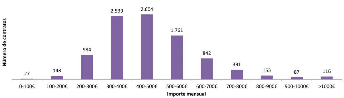 Nº de contratos en función do importe mensual
