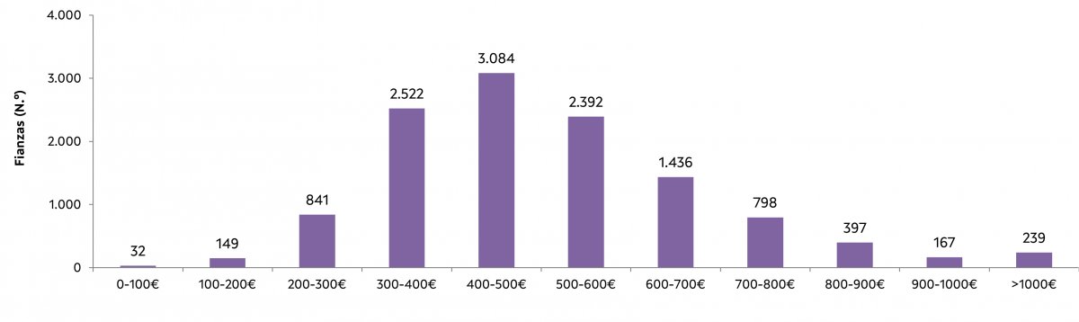 Número de fianzas de contratos asinados no ano 2024 por importe medio da renda mensual