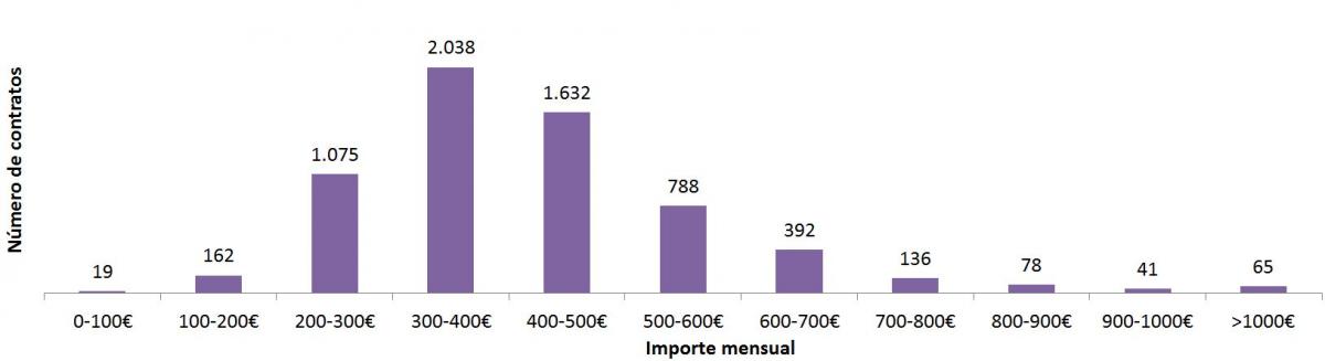 Número de contratos asinados nos anos 2014-2019 por importe mensual