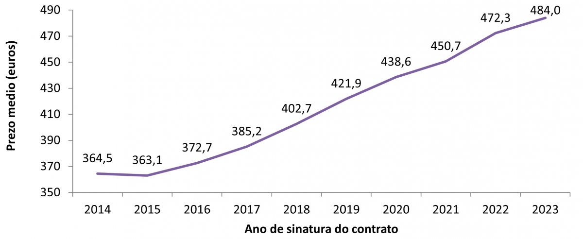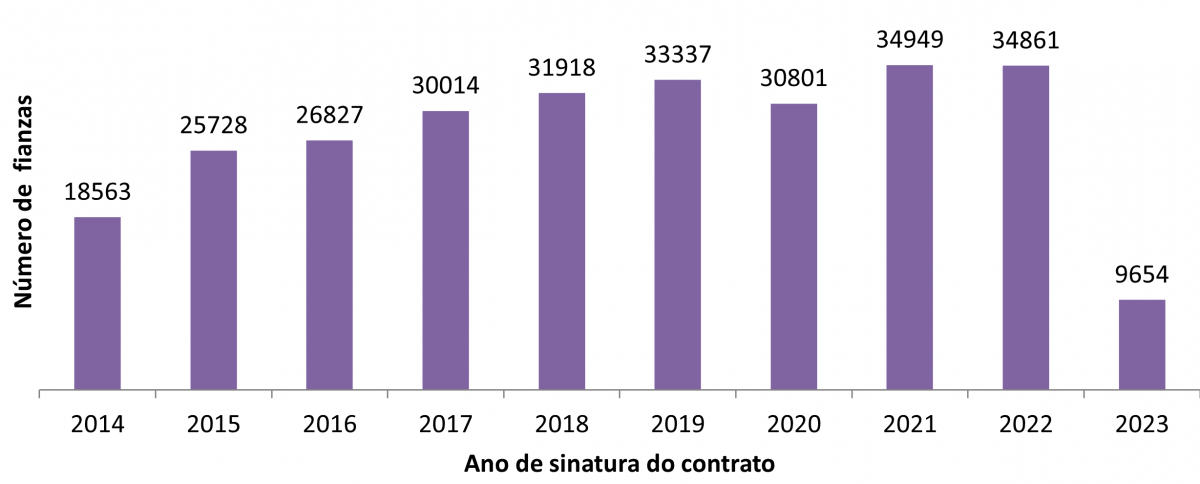Fianzas por data de contrato. Número e importe medio dos contratos | Abril 2023