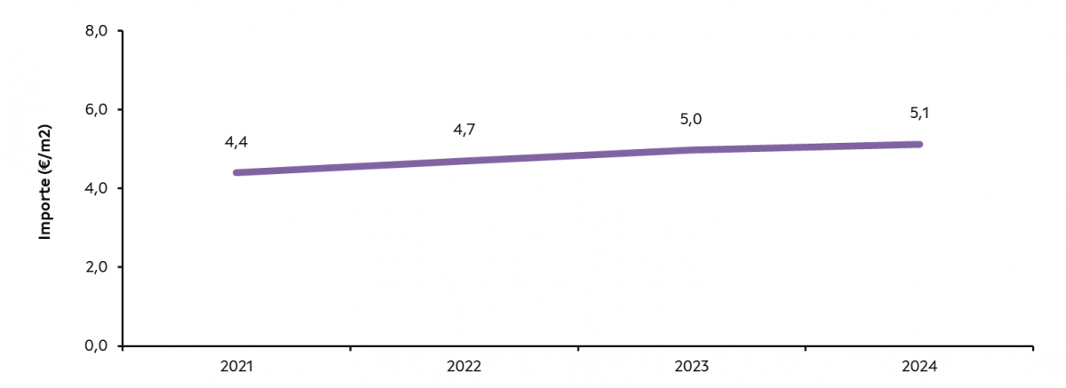 Importe medio por metro cadrado da renda mensual por ano de contrato