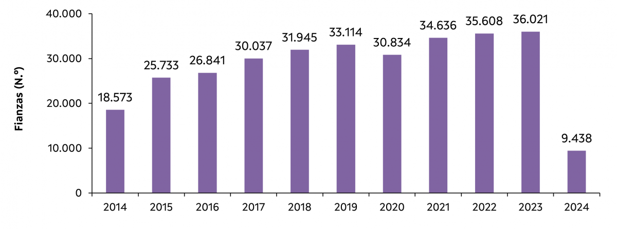 Fianzas por data de contrato. Número e importe medio dos contratos | Abril 2024