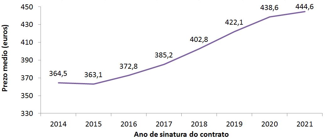 Ano do contrato Nª de fianzas Importe medio (€) Variación sobre o ano anterior