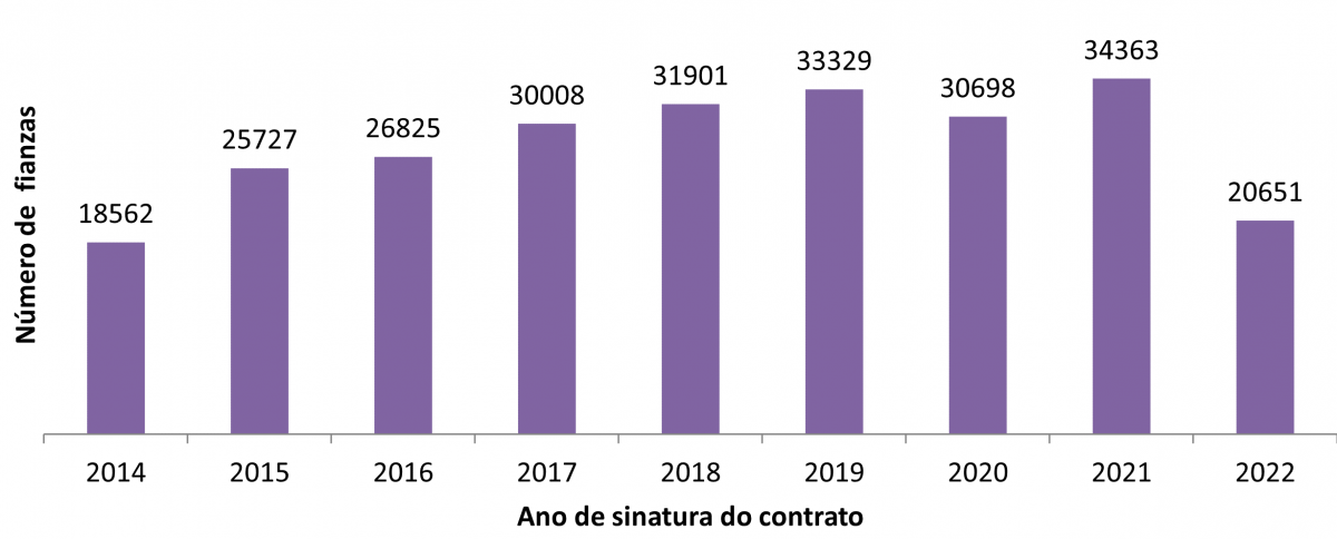 Número de fianzas por ano de contrato