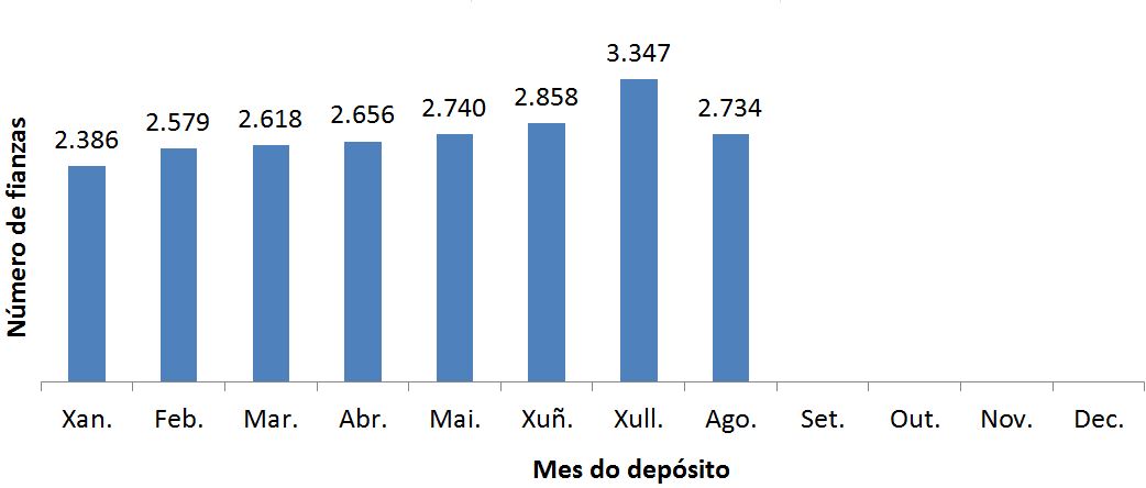 Fianzas por mes do depósito. Número de fianzas | Agosto 2021