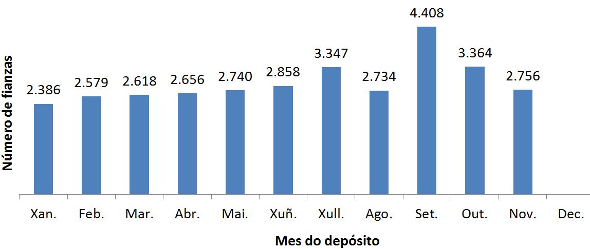 Fianzas por mes do depósito. Número de fianzas | Novembro 2021