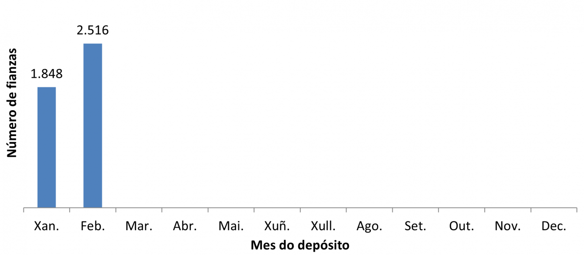Fianzas por mes do depósito. Número de fianzas por mes de contrato | Febreiro 2023