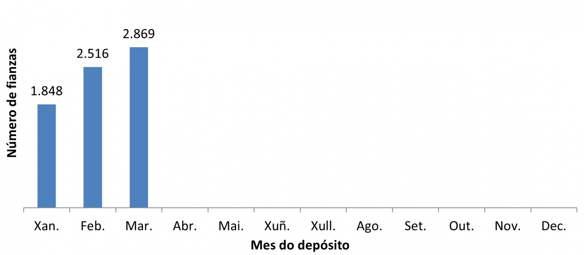 Fianzas por mes do depósito. Número de fianzas por mes de contrato | Marzo 2023
