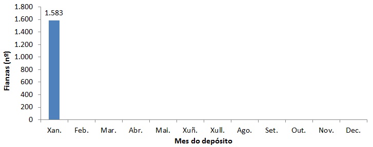 Fianzas por mes do depósito. Número de fianzas por mes de contrato (xaneiro 2019)