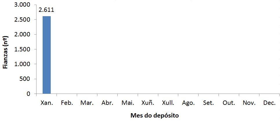 Fianzas por mes do depósito. Número de fianzas (xaneiro 2020)