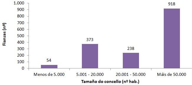 Tamaño do concello (habitantes) Nº de concellos Nº de fianzas (2017) Importe medio (€)