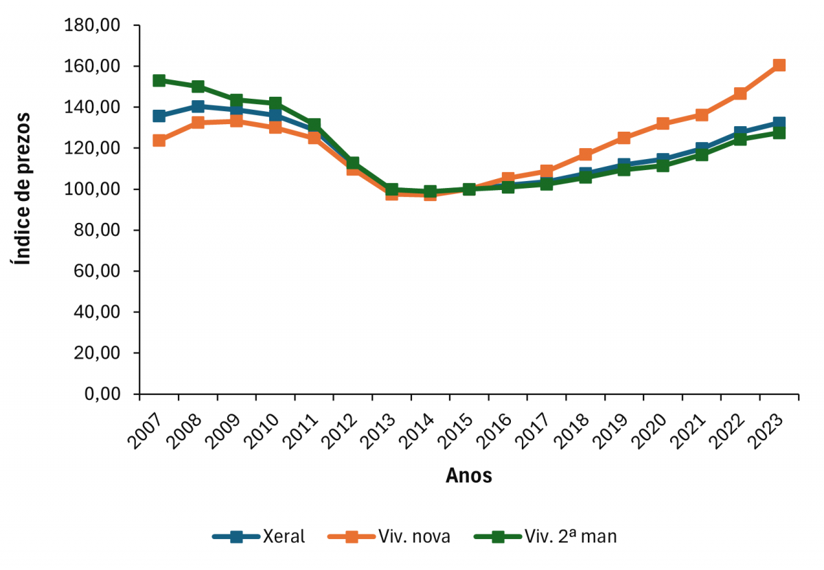 Índice de prezos da vivenda (2007 - 2023). Base 2015.