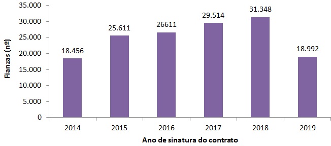 Número de contratos de alugueiro por anos (2014-2019*)