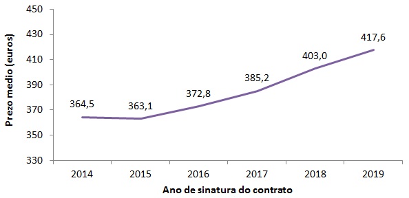Prezo dos alugueiros por anos (2014-2019*)
