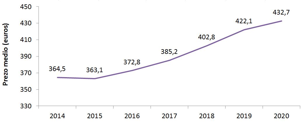 Prezo dos alugueiros por anos (2014-2020*)