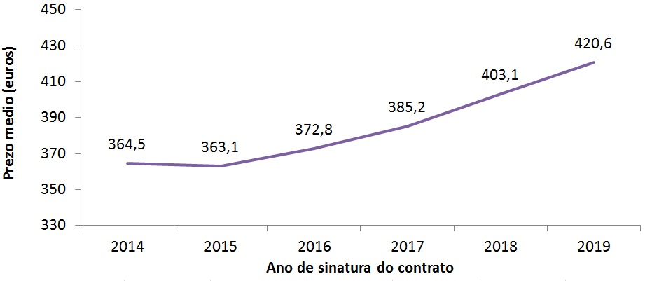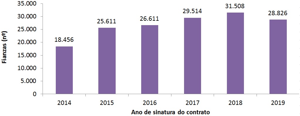Ano do contrato Nª de fianzas Importe medio (€) Variación sobre ano anterior