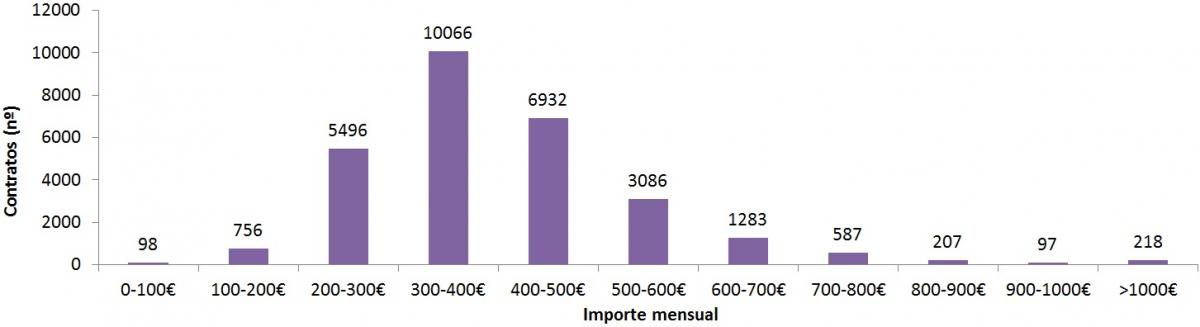 Número de contratos de alugueiro no ano 2019* por prezo mensual do alugueiro