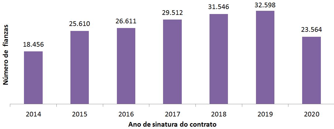 Número de contratos de alugueiro por anos (2014-2020*)
