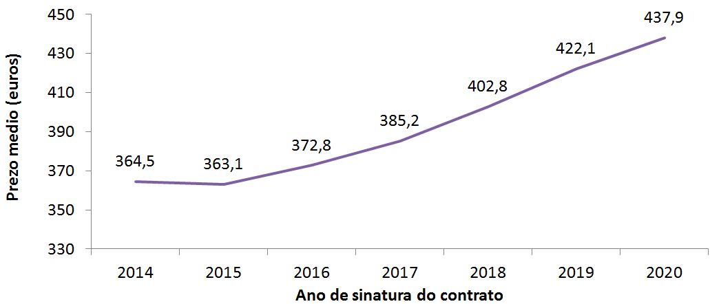 Prezo dos alugueiros por anos (2014-2020*)