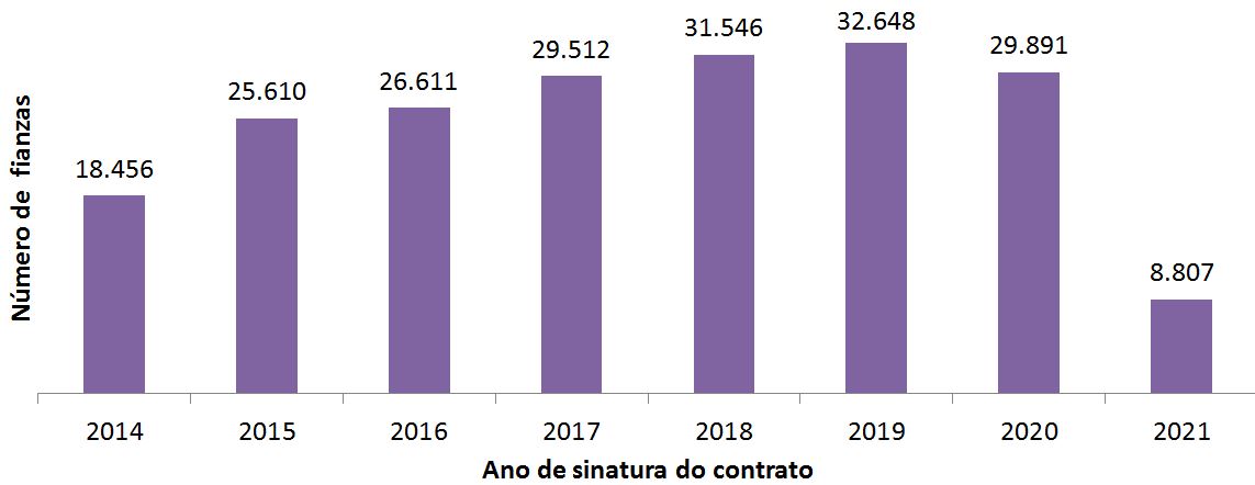 Ano do contrato Nª de fianzas Importe medio (€) Variación sobre o ano anterior