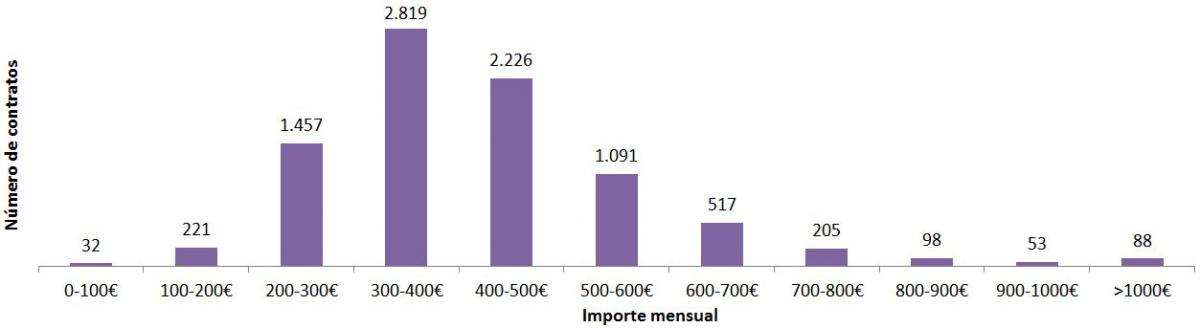 Número de contratos de alugueiro no ano 2021* por prezo mensual do alugueiro
