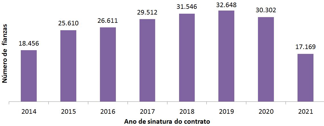 Número de contratos de alugueiro por anos (2014-2021*)