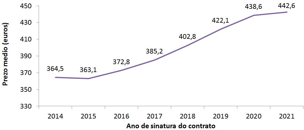 Prezo dos alugueiros por anos (2014-2021*)