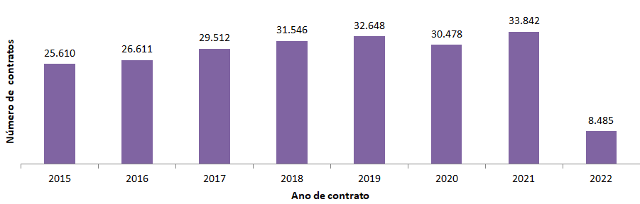 Número de contratos de alugueiro por anos (2014-2022*)