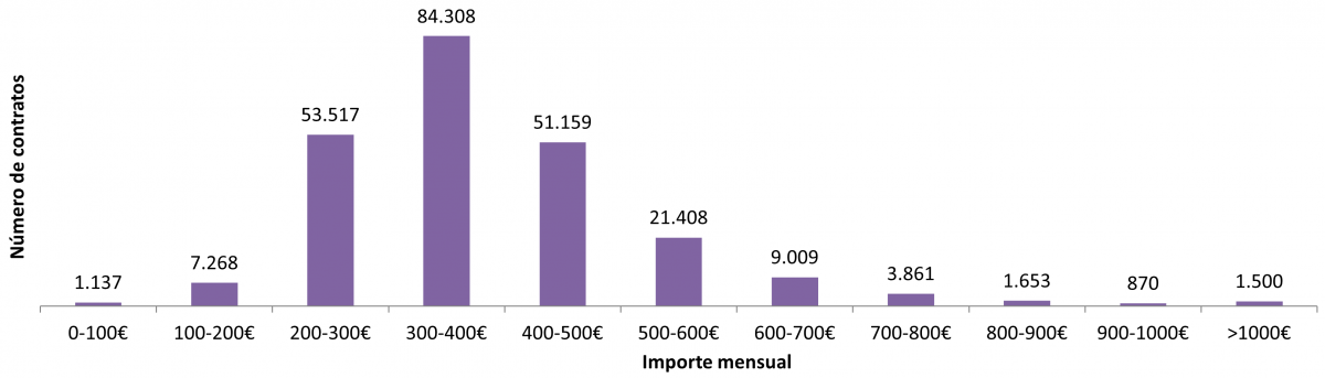 Nº de contratos en función do importe mensual