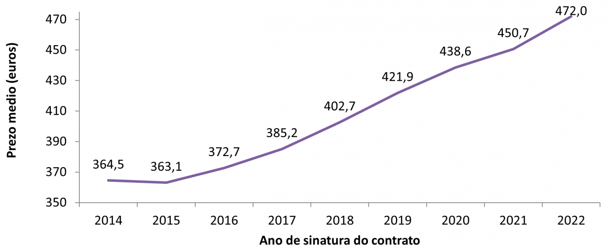 Prezo dos alugueiros por anos (2014-2022*)