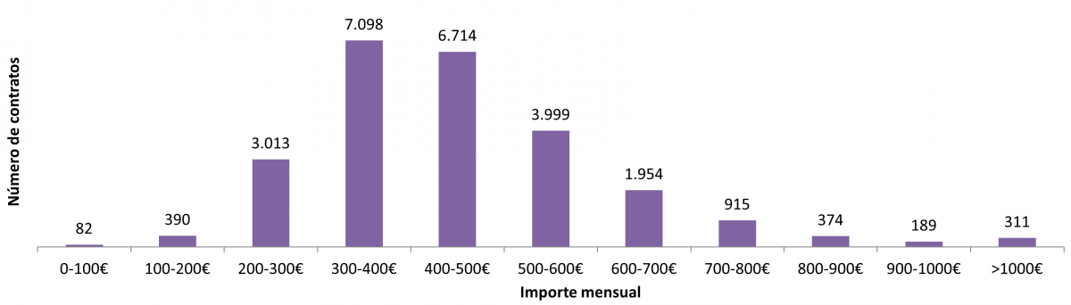 Nº de contratos en función do importe mensual