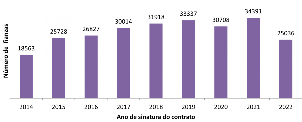 Número de contratos de alugueiro por anos (2014-2022*)