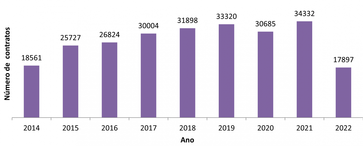 Número de contratos de alugueiro por anos (2014-2022*)