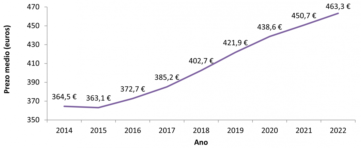 Prezo dos alugueiros por anos (2014-2022*)