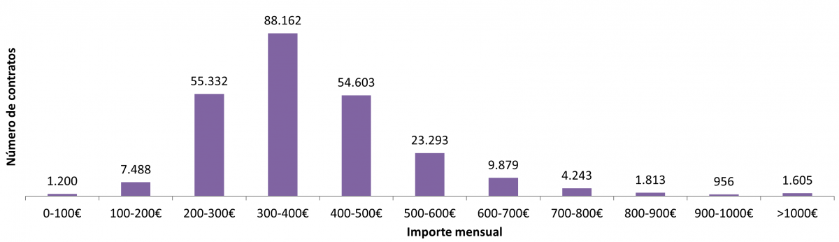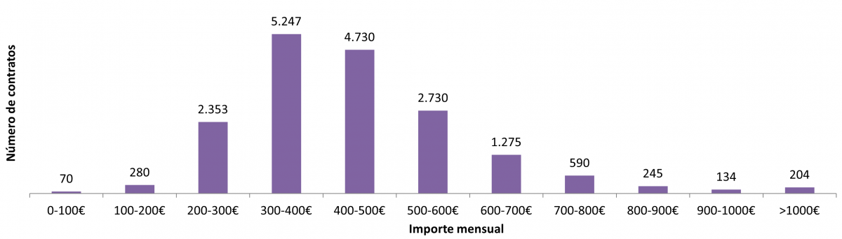 Nº de contratos en función do importe mensual