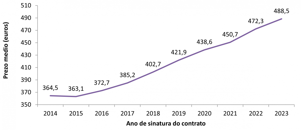 Prezo dos alugueiros por anos (2014-2023*)