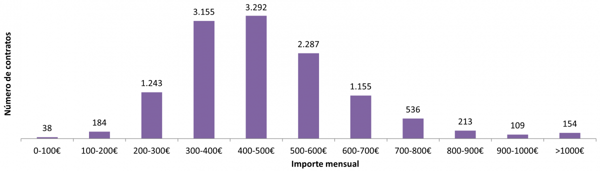 Nº de contratos en función do importe mensual